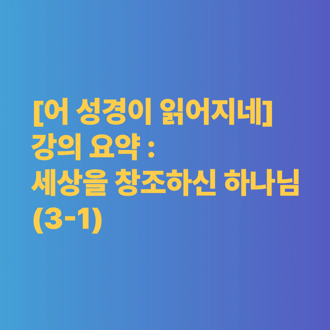 | 『어 성경이 읽어지네』 강의 요약: 성경을 읽는 바른 자세(1-1) (0) | 2025.04.02 |