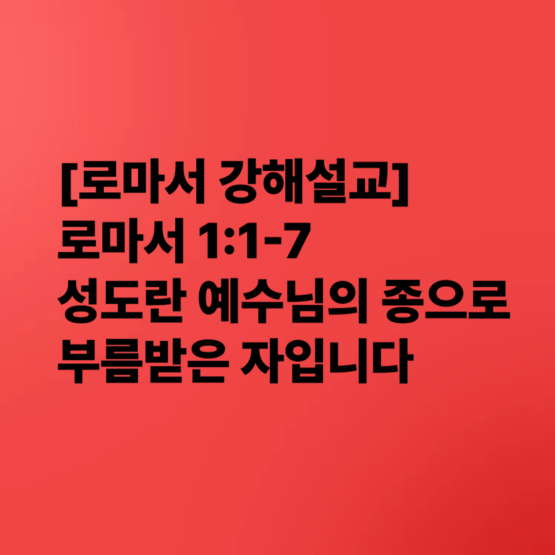 | [로마서 강해설교] 로마서 1:1-7 | 그리스도인의 정체성과 사명 by Songbyungmin (1) | 2025.06.17 |